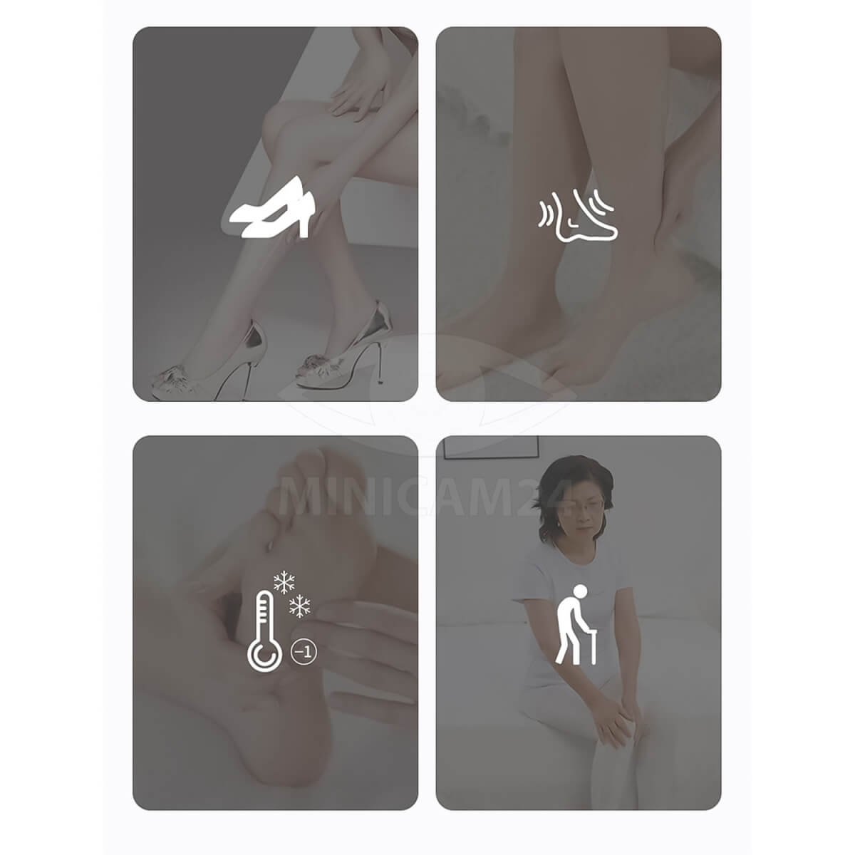 Массажер имеет роликовый массаж центральной части стопы и пневмо массаж всей поверности стопы.